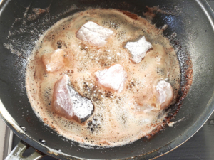 ![]() ④180度くらいの油でたらを両面3分ずつ揚げましょう。 (表面が固まって崩れないくらいが目安です。) |