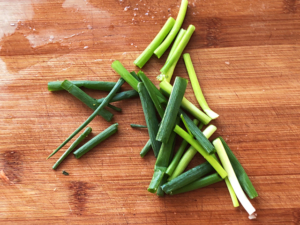 ![]() ⑦万能ねぎは食べやすい長さに切りましょう。 |