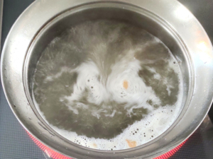 ![]() ②鍋に水を沸かし、ウェイパーと塩を入れて調味料をしっかりと溶かしましょう。 |