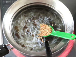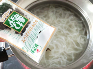 ![]() ③鍋に白滝を加え、ふたをして2~3分煮ます。 |