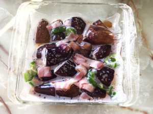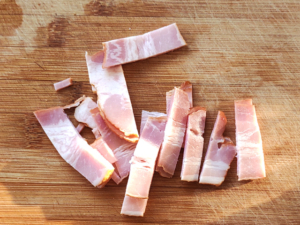 ![]() ③ベーコンは、5~8mm幅に切ります。 |