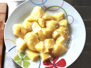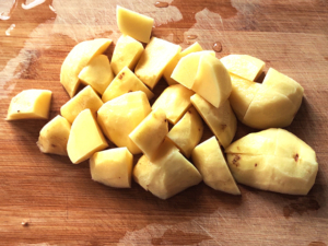 ![]() ①じゃがいもは皮をむき、一口大に切ります。 |