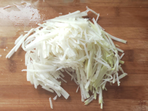 大根は根元の方ではなく、青い先端部分を使ってください。