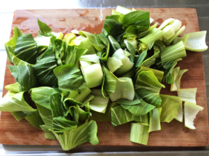 ![]() ②チンゲンサイは根元の泥を良く洗い、食べやすい長さに切ります。 |