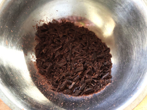 ![]() ⑨チョコは細かく刻んで、ボールに入れます。 |