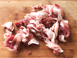 ③豚こまは食べやすい長さに切ります。