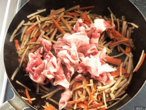 豚こまとごぼうのマヨ醤油炒め