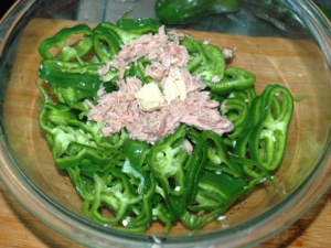 ![]() ②耐熱ボールに、ピーマン、シーチキン、ウェイパーを入れて軽く混ぜましょう。 |
