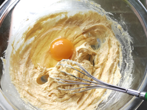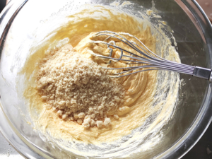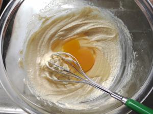 もしアーモンドパウダーを入れないなら、卵は一気に入れず、溶き卵にして半量ずつ入れてください。