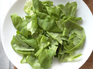 ![]() ③皿に洗ったサラダ菜を乗せます。 |