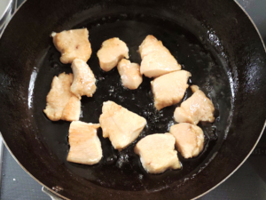 鶏肉はしっかりと火を通さないと危険ですので、ちょっと多めに火を通してください。