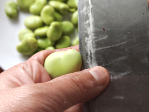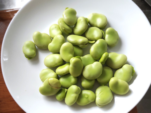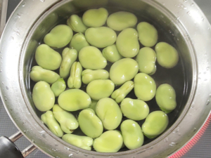 ![]() ④そら豆は薄皮をむいておきましょう。 |