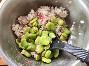 ![]() ⑦最後にそら豆をボールに加え、豆が崩れないように優しく混ぜましょう。 |