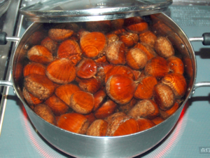 ![]() ②お湯を沸かし、浸した栗を入れたら、再度沸騰させてから、3~5分ゆでます。 |