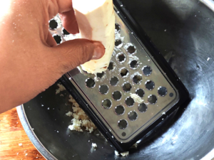 ![]() ④山わさびの皮をむき、おろし金ですりおろします。 |