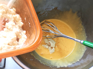 ![]() ⑤サラダ油を大1ずつ加え、その都度良く混ぜます。 |