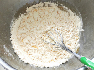 ![]() ⑥薄力粉とベーキングパウダーを合わせてふるい入れ、粉っぽさが消えるまで良く混ぜ合わせましょう。 |