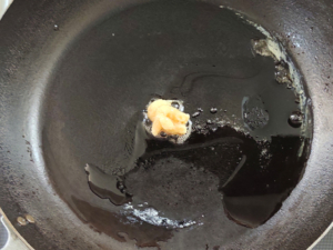 ![]() ④フライパンをきれいにしたら、また薄く油(分量外)を引き、弱火で生姜を炒めて香りを出します。 |
