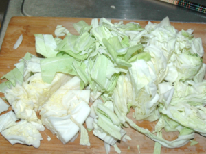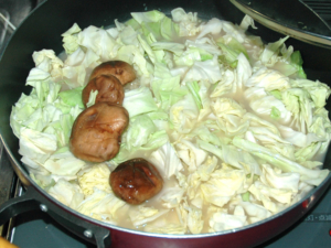 ![]() ④鍋が沸騰したら、キャベツと椎茸を加え、蓋をして、3~5分ほど火を通します。 |