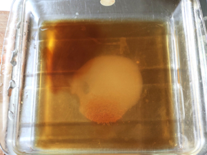 ②耐熱容器(今回はイワキのケーキ型・20cm角を使用)に、★南蛮風液の材料をすべて入れ、軽くかき混ぜて溶かします。