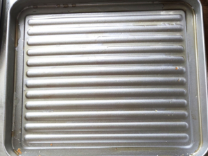 ![]() ⑦オーブントースター用の天板に油(分量外)を少し多めに塗っておきます。 (くっつくのを防ぎます。) |