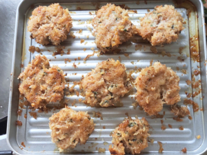![]() ⑨焼いたら、そっとひっくり返し、さらにオーブントースターで13~15分焼きます。 |