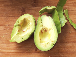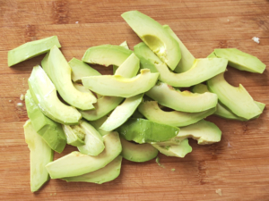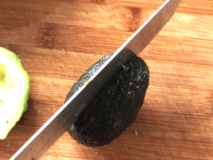 ![]() ⑥アボカドを縦に薄くスライスします。 |