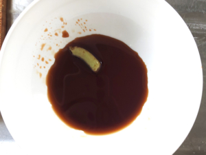 ![]() ⑦容器にわさびと醤油を入れ、わさびが溶けるまでしっかりと混ぜ合わせます。 |
