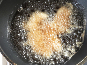 ⑤190度の油で、軽く焦げ目がつく程度まで揚げます。