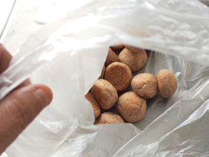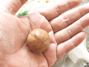 ![]() ⑤生地を一つずつ手に取り、親指よりやや大きな3cmくらいに丸めましょう。 |
