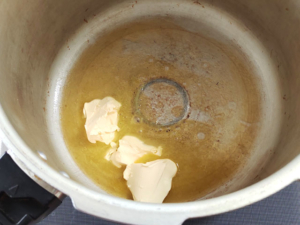 ![]() ④圧力鍋を加熱して、マーガリンを溶かします。 |