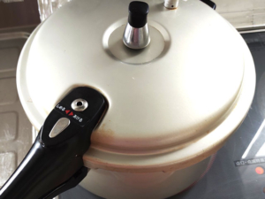 ![]() ⑦蓋をして強火で加熱し、上の重りがカタカタしだしたら、弱火にして、15分ほど煮ます。 ⑧煮えたら、蓋が取れるまで室温に放置しましょう。 |