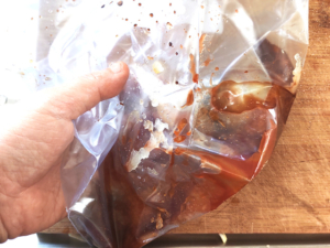 ![]() ③冷凍用のZIP袋に★漬け込み液の材料と玉ねぎを入れ、外側から手でもみこみます。 |
