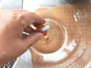 ③★タルト生地の卵を少しずつ加え、その都度良く混ぜます。