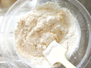 ![]() ④ボールに薄力粉とアーモンドパウダーを一緒にふるい入れ、ゴムベラで練らないようにさっくりと混ぜましょう。 |