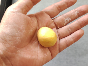 ![]() ⑥生地を一つずつ手に取り、親指よりやや大きな3cmくらいに丸めます。 |