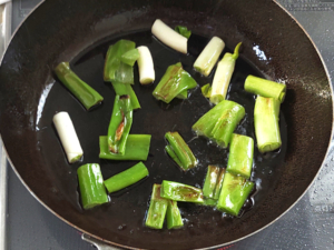 ![]() ⑤フライパンに薄く油(分量外)を引き、ねぎに焼き色がつくまで焼いたら、取り出しましょう。 |