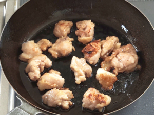 鶏肉にはしっかりと火を通さないと危険なので、強めに火を通してください。
