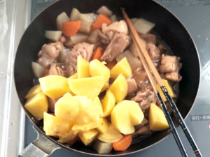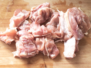 鶏肉は少し大きめに切っていますが、火の通りを早くしたいなら、小さめに切ってもOKです。