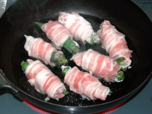 豚の薄切り肉が手に入ったので、オクラをちょっと巻いてみました。アスパラよりも、柔らかくて美味しいと家族に大好評。オクラの肉巻きは、ご飯も進みます。