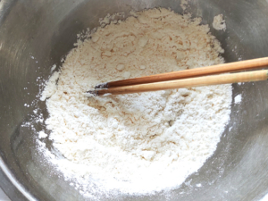 ![]() ①ボールに、薄力粉、片栗粉、ベーキングパウダーを入れて、良く混ぜておきます。 |
