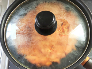 ![]() ⑧蓋をして、弱めの中火で3~5分焼きましょう。 |
