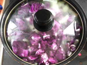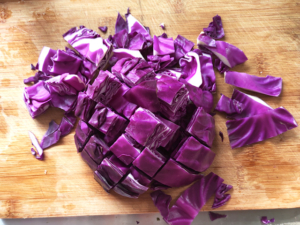 ![]() ③紫キャベツはざく切りにします。 |