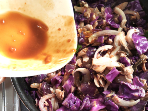 ![]() ⑦野菜がしんなりしているのを確認し、たれを回しかけ、しっかりと混ぜ合わせましょう。 |