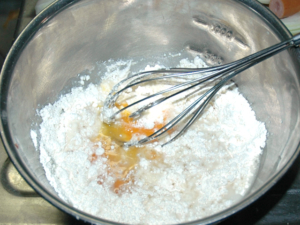 ![]() ③★バッター液の材料をボールに入れ、しっかりと混ぜ合わせます。 |