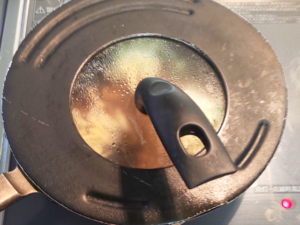 ![]() ⑦焼けたハンバーグをフライパンに加え、1~2分弱火で温めます。 |