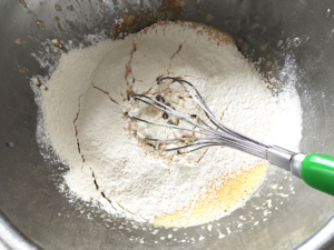 ![]() ⑤薄力粉とベーキングパウダーを合わせてふるい入れ、粉っぽさが消えるまで良く混ぜ合わせましょう。 |