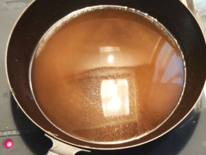 ![]() ⑤フライパンに、水、醤油、みりん、ほんだし、片栗粉を入れてよく混ぜ合わせ、煮立たせます。 (強くとろみをつけたいなら、片栗粉を増やしてみてください。) |