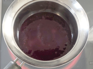 ![]() ②小鍋にぶどうジュースを入れ、煮立たせましょう。 |