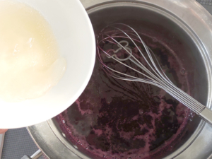 ![]() ③一旦火を止め、ふやかしたゼラチンを加えて混ぜ、しっかりと溶かします。 ④粗熱を取り、ボールに移し替え、1時間以上冷やし固めましょう。 |
